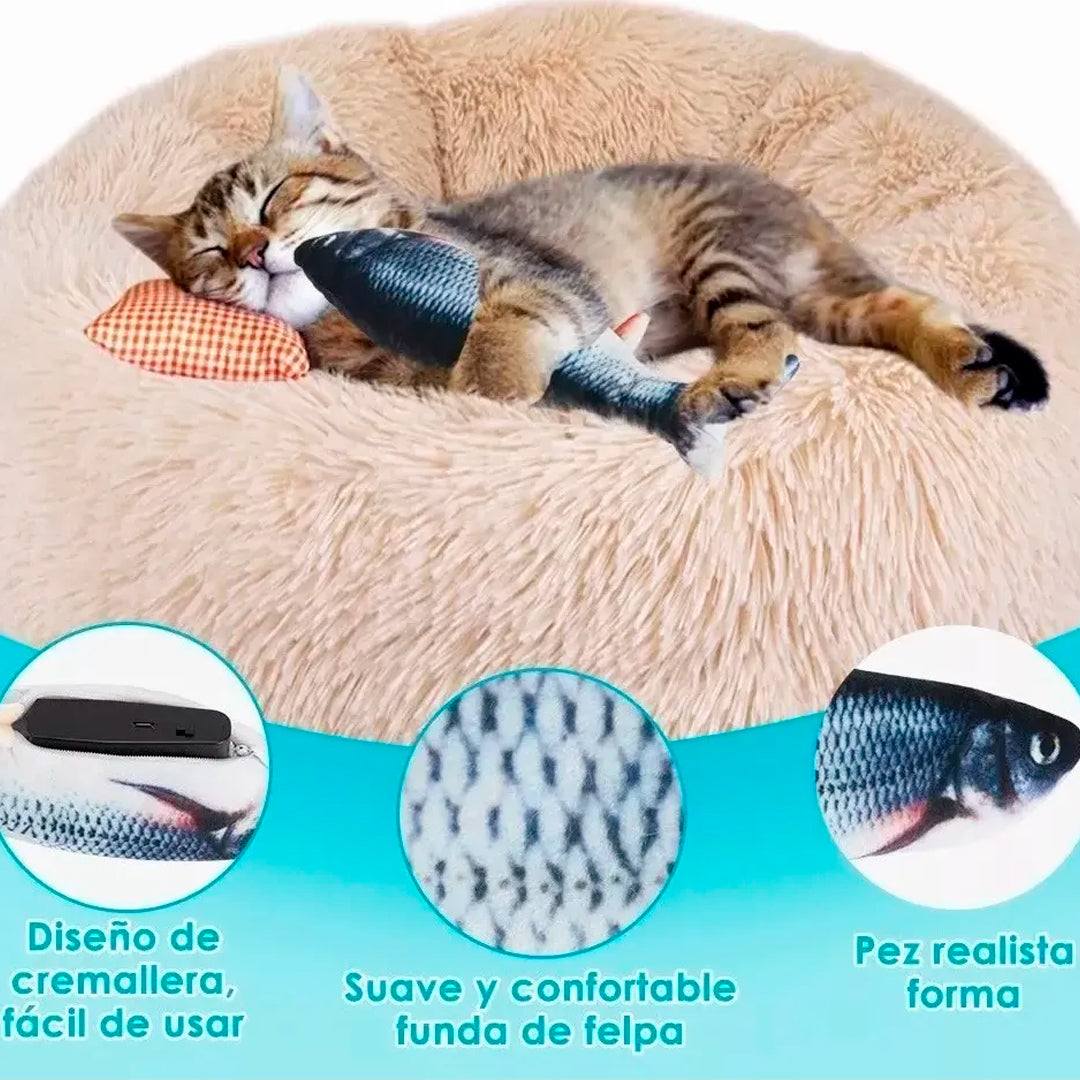 ¡Consentimos a tus gatos también! Desde juguetes hasta rascadores, todo para hacerlos ronronear de felicidad. Pescado con movimiento, recargable.